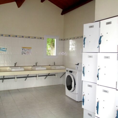 Le plus : Papier hygiénique dans tous nos sanitaires, casiers à jetons à disposition pour poser vos affaires en sécurité pendant votre douche.